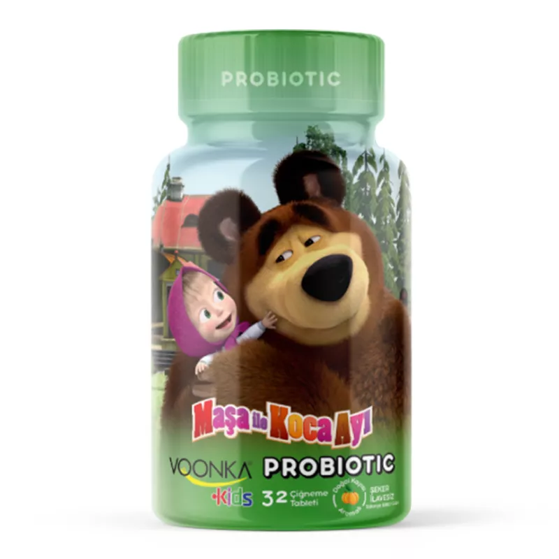 Voonka Maşa ile Koca Ayı - Probiotic Takviye Edici Gıda 32 Çiğneme Tableti