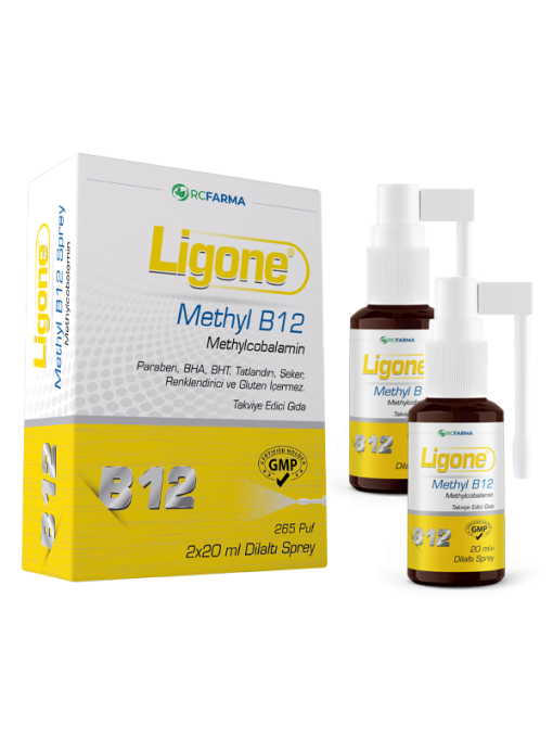 Ligone Methyl B12 Sprey; Vitamin B12’nin aktif formu olan Metilkobalamin içerir. Paraben, BHA, BHT, Tatlandırıcı, Şeker, Renklendirici, Gluten içermez. Toplam 265 puf olup 132,5 mg Metilkobalamin içerir.