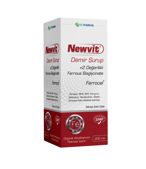 Newvit Demir Şurup, çocuklar ve yetişkinler için geliştirilmiş bir gıda takviyesidir. Newvit Demir Şurup, + 2 değerlikli demir bisglisinat ve organik keçiboynuzu pekmezi içerir. Organik keçiboynuzu pekmezinin içerdiği HMF (Hidroksimetil Furfural) miktarı, AB standartlarının 1/7’si kadardır.
