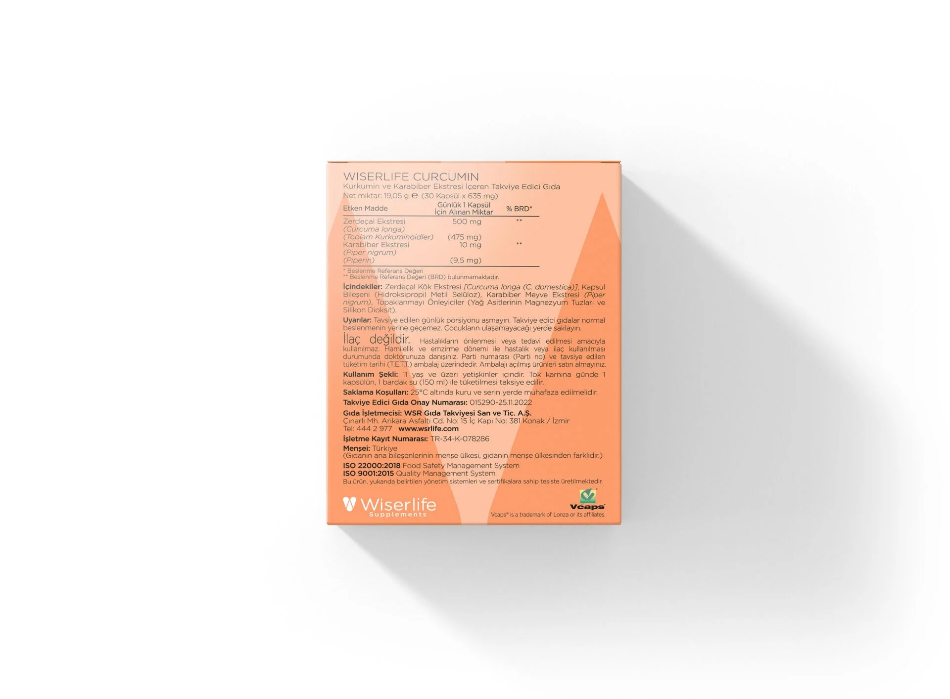 Zerdeçal Kök Ekstresi [Curcuma longa (C. domestica)], Kapsül Bileşeni (Hidroksipropil Metil Selüloz), Karabiber Meyve Ekstresi (Piper nigrum), Topaklanmayı Önleyiciler (Yağ Asitlerinin Magnezyum Tuzları ve Silikon Dioksit).